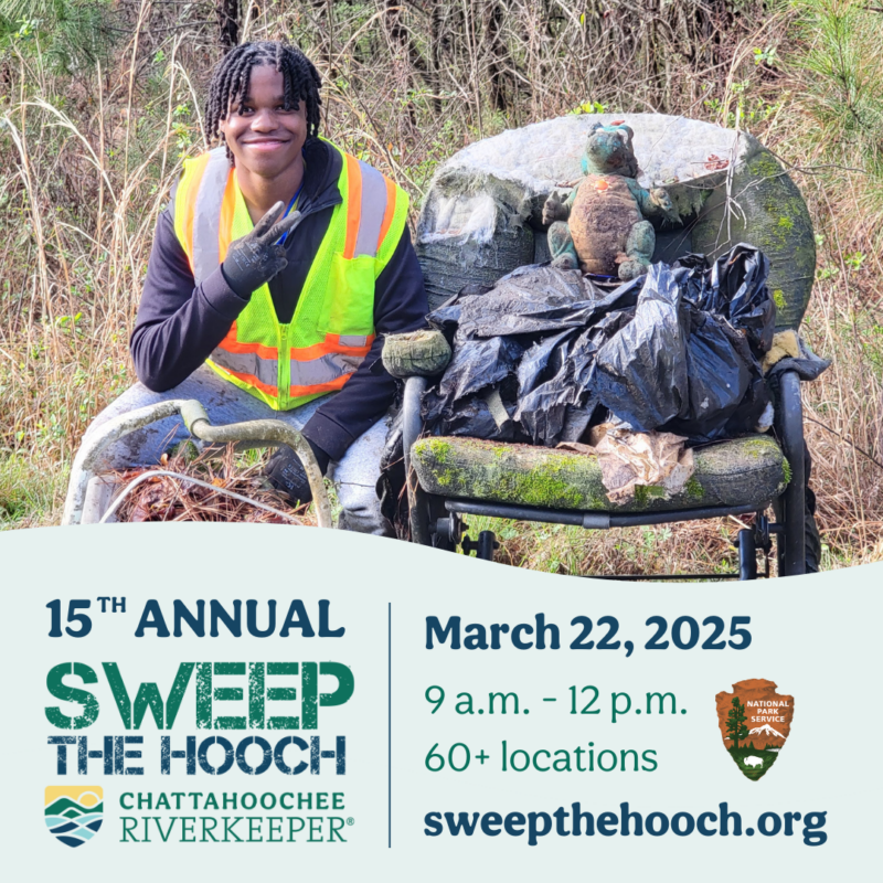Sweep the Hooch returns for the 15th year! This watershed-wide day of service is an enormous cleanup effort along the Chattahoochee River and its tributaries. Chattahoochee Riverkeeper and partnering hosts are excited to offer more than 60 volunteer cleanup sites for walkers, waders, and paddlers throughout the entire watershed. This event would not be possible without you and all the partnering organizations who help host these sites. Thank you for your support!