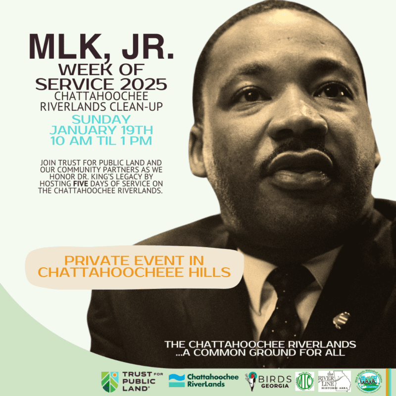 Join Trust for Public Land and our community partners as we honor Dr. King’s legacy with five days of service along the Chattahoochee RiverLands, from Chattahoochee Hills to the West Atlanta watersheds and Mableton. There’s something for everyone to do!