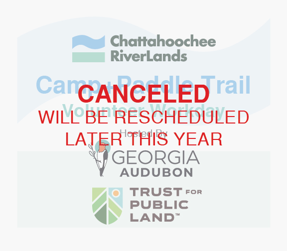 Volunteer workday with GA Audubon at Camp+Paddle Trail site. Please join us 9:00am-12:00pm for “Habitat Restoration Workday at RiverLands Park in Chattahoochee Hills”.